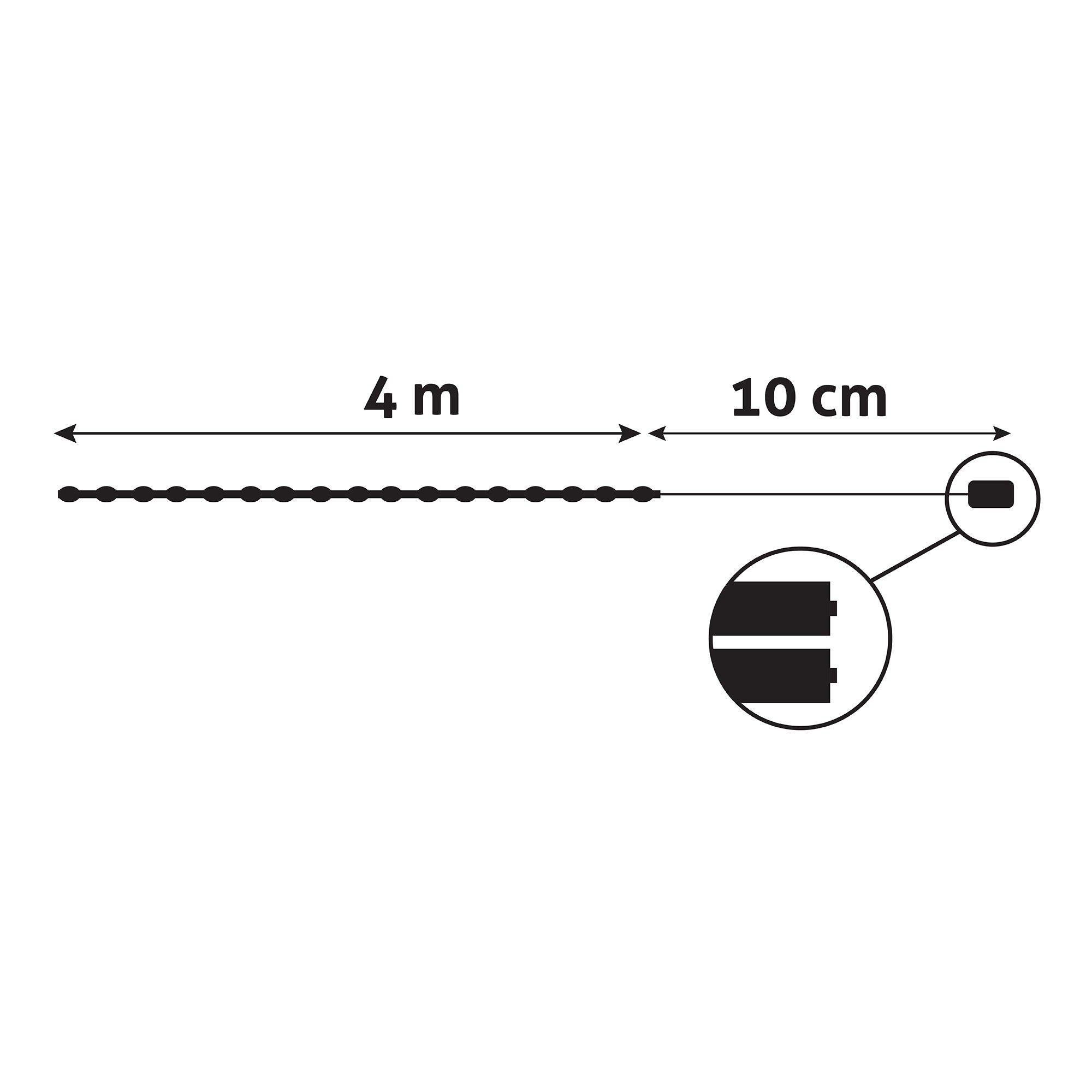 Our wire string Christmas lights are available in warm white (WW) or cool white (CW) color temperatures. The 1 and 4-meter long string features 20 or 80 LEDs, while an additional 10 centimeters of cable ensures convenient access to the battery box.. The product works with 2 AA batteries not included in the package.