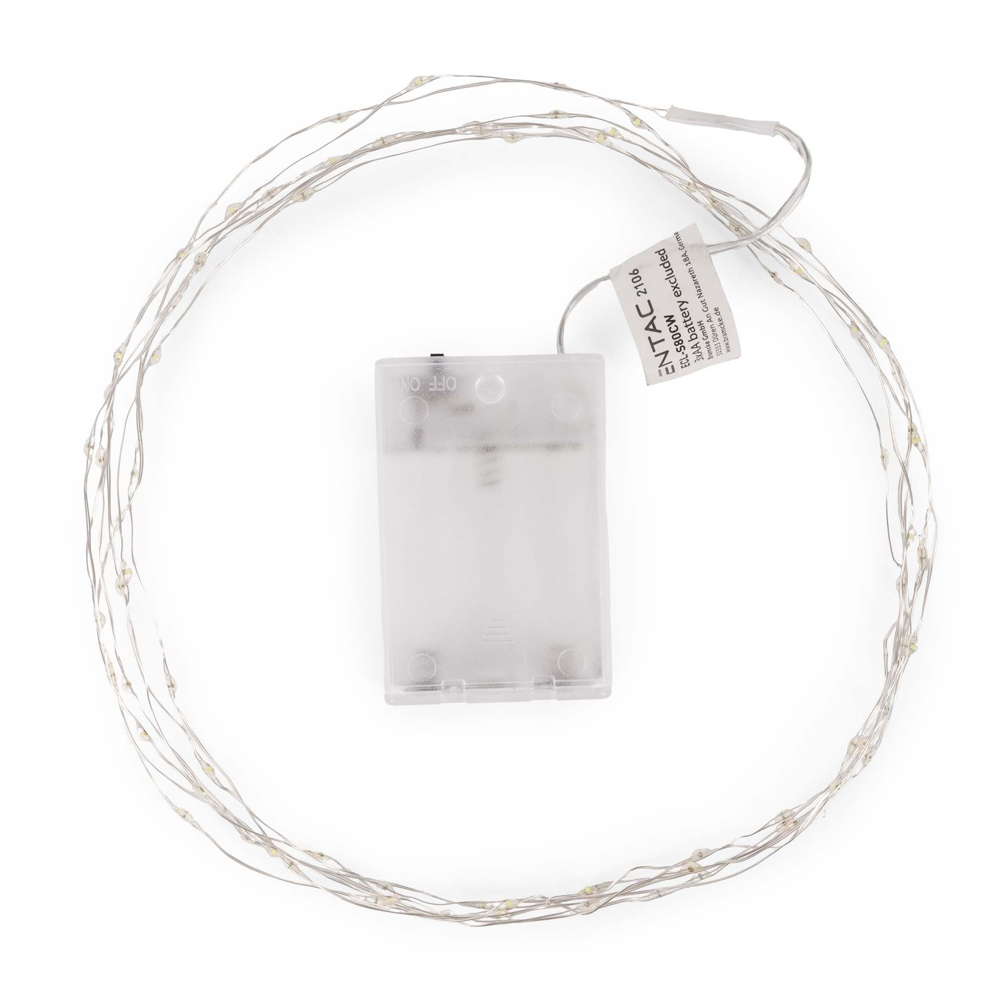 Our wire string Christmas lights are available in warm white (WW) or cool white (CW) color temperatures. The 1 and 4-meter long string features 20 or 80 LEDs, while an additional 10 centimeters of cable ensures convenient access to the battery box.. The product works with 2 AA batteries not included in the package.