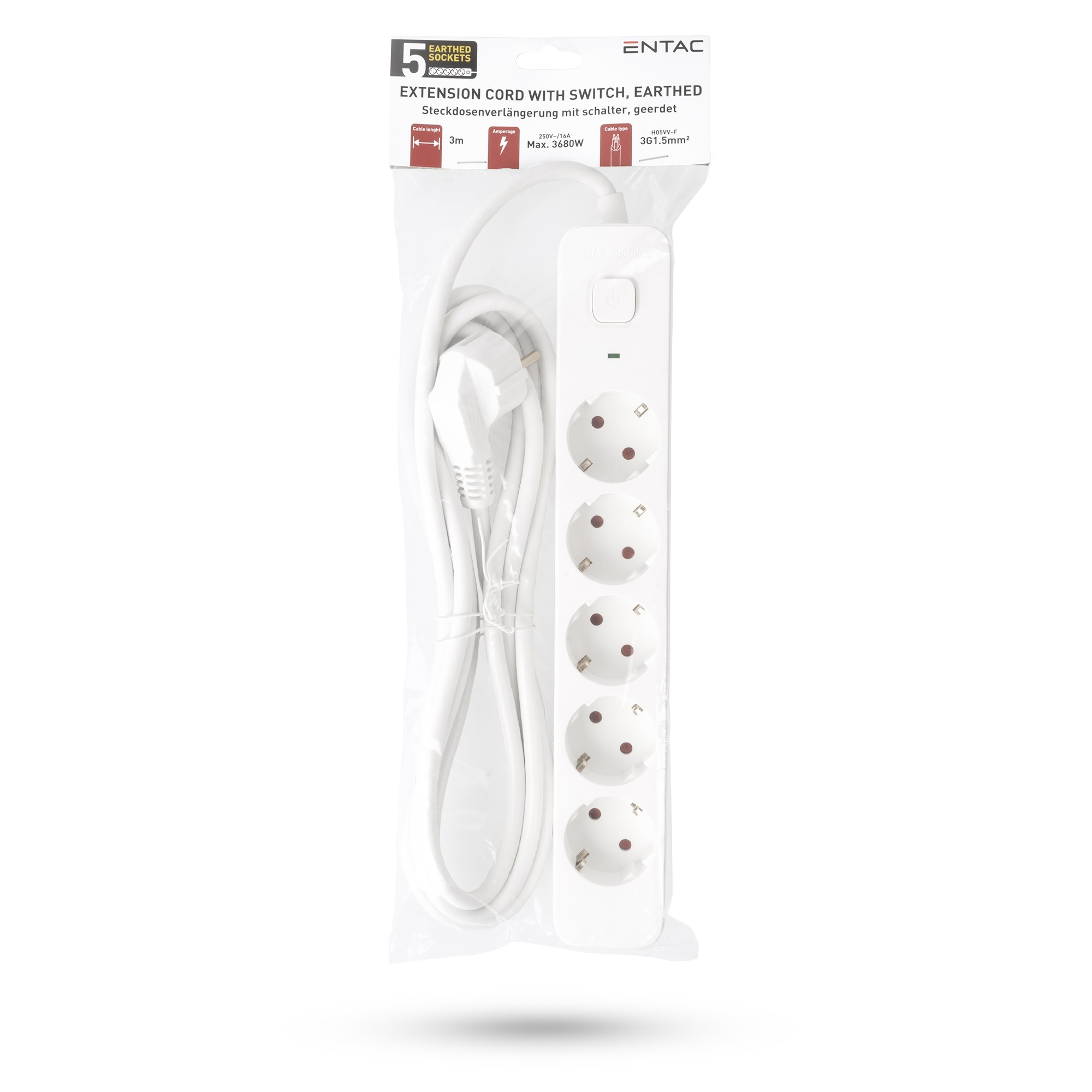 Socket Extension Cord D2 5 Sockets with Switch 3m 3G1.5