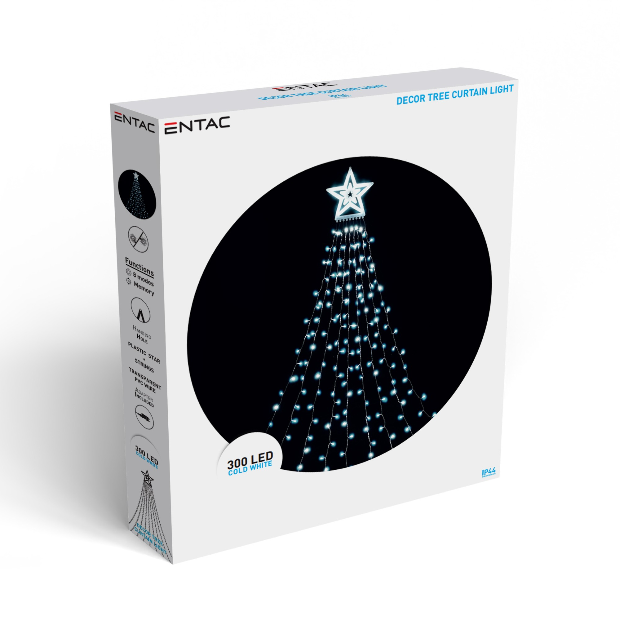 Entac Christmas Tree Curtain Light CW IP44 300 LED 10x2.9m with 8F