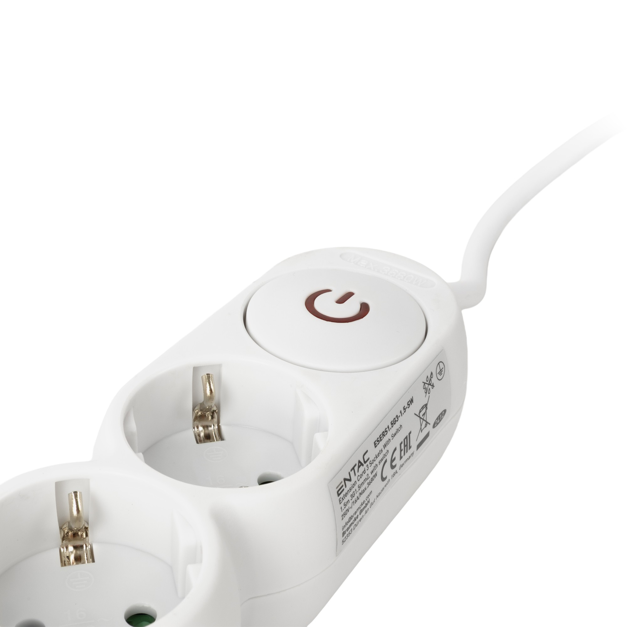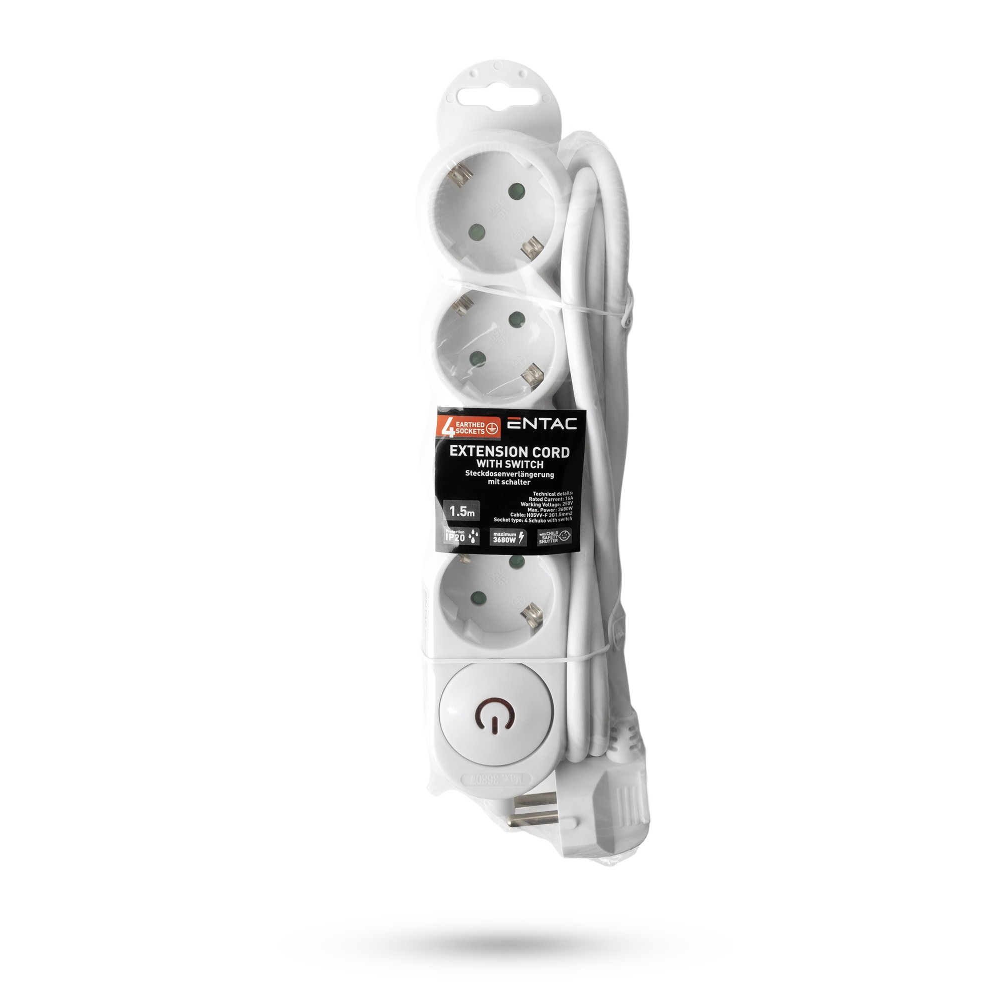 Steckdosen-Verlängerungskabel D1 4 Entac-Steckdosen mit Schalter 1,5 m 3G1,5