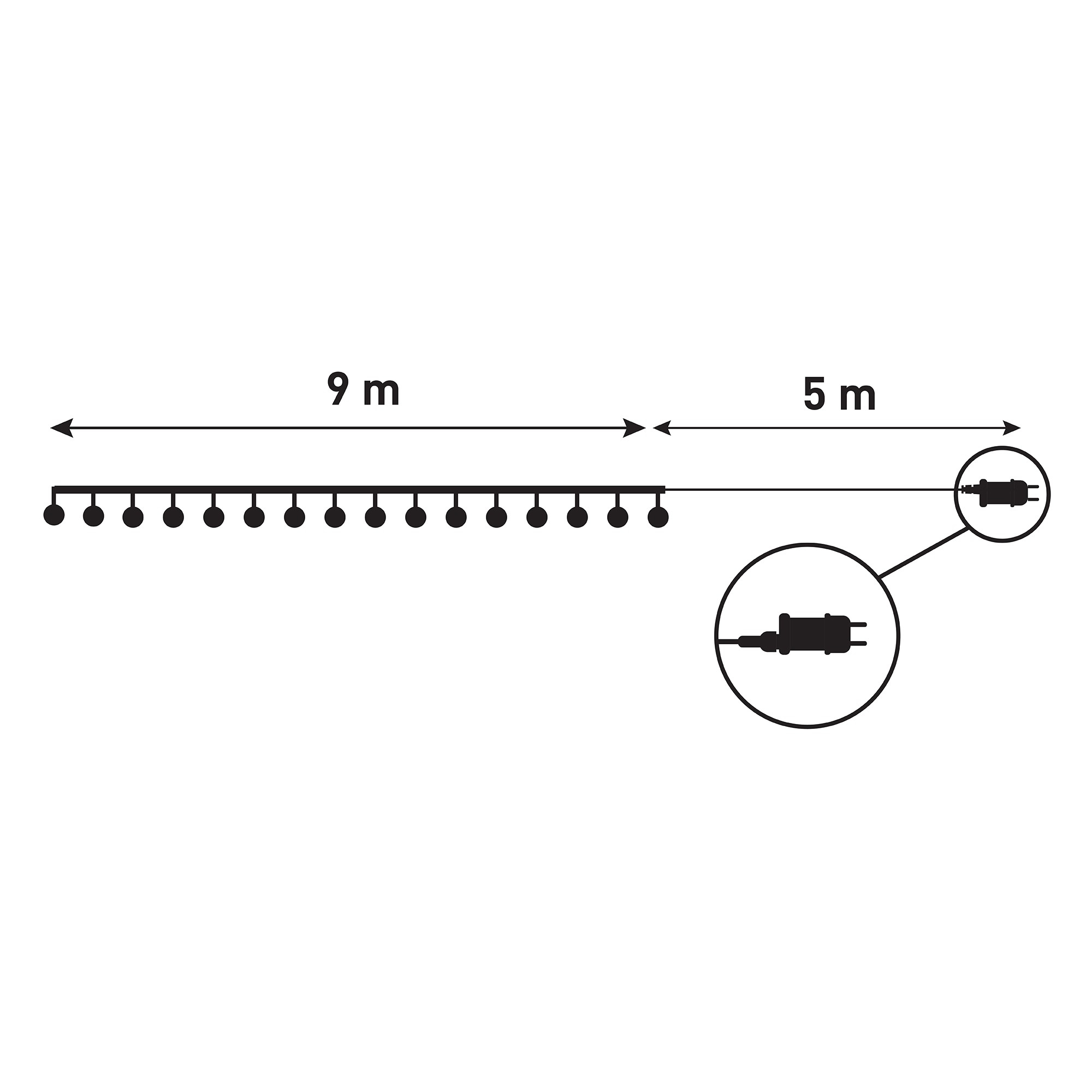 Unsere steuerbaren Weihnachtskugeln sind in den warmweißer (WW) und kaltweißer (CW) Farbtemperaturstufe, bzw. in mehrfarbiger und RGB-Varianten verfügbar. Ihre IP44-Eigenschaft macht sie für sowohl innere als auch äußere Verwendung geeignet. Es gibt 120 LEDs auf der 9 Meter langen Kette und das zusätzliche 5 Meter lange Kabel ermöglicht den leichten Zugang zur Stromquelle.