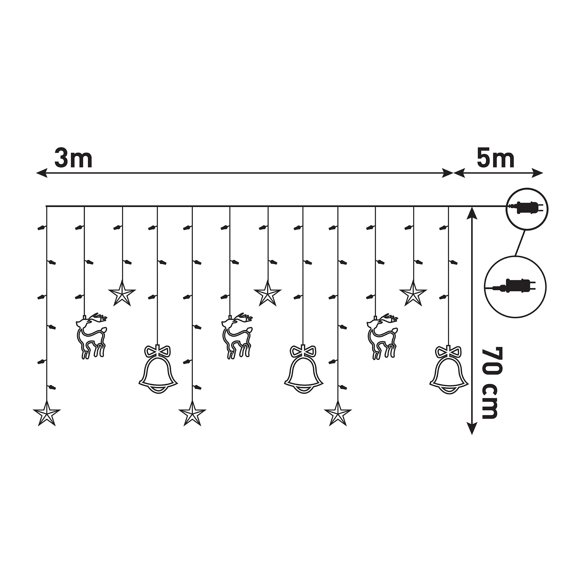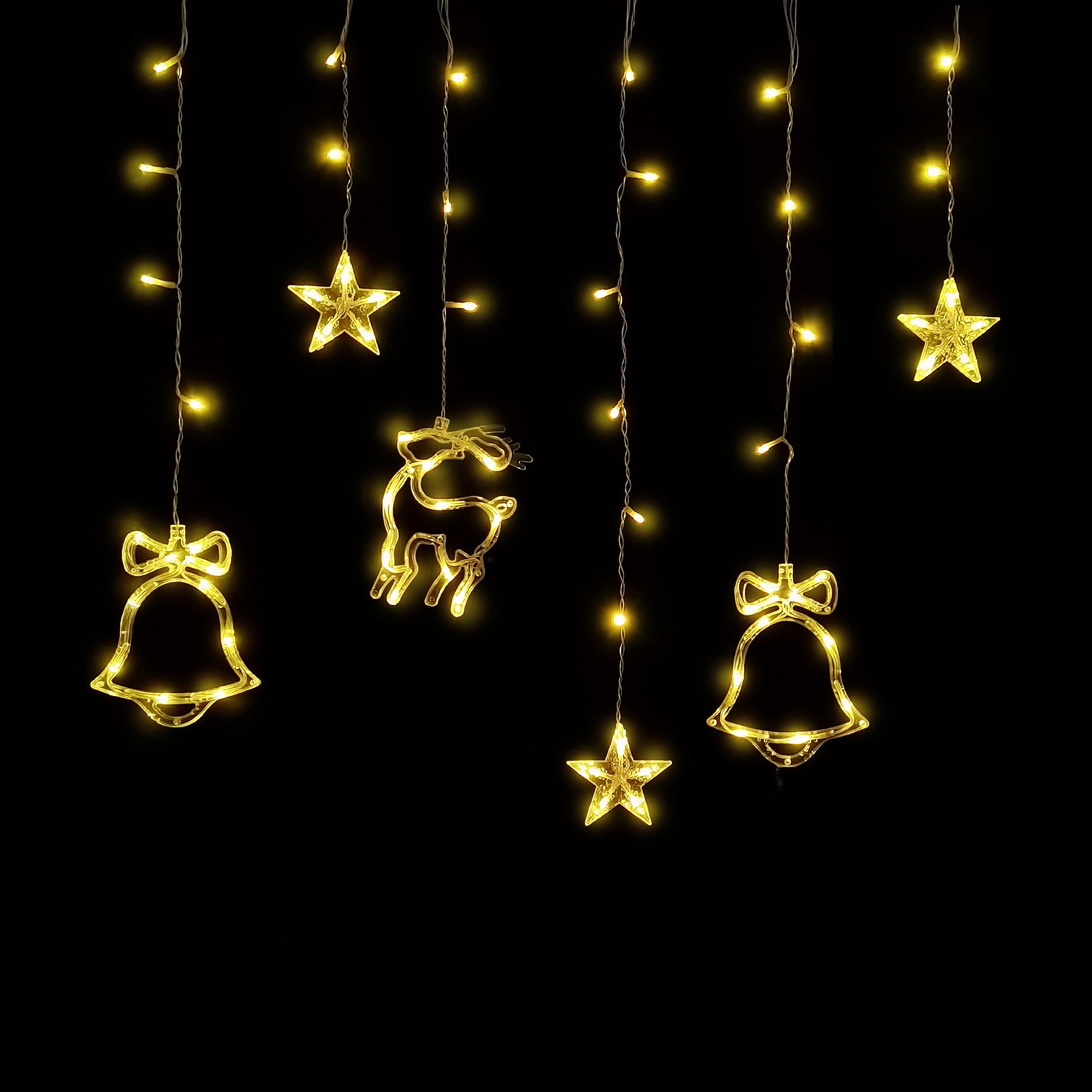 Entac Christmas Curtain Light IP44 WW 135 LED 12 Strings of Bells and Deers + 8F Timer 3x0,7m with IR Remote