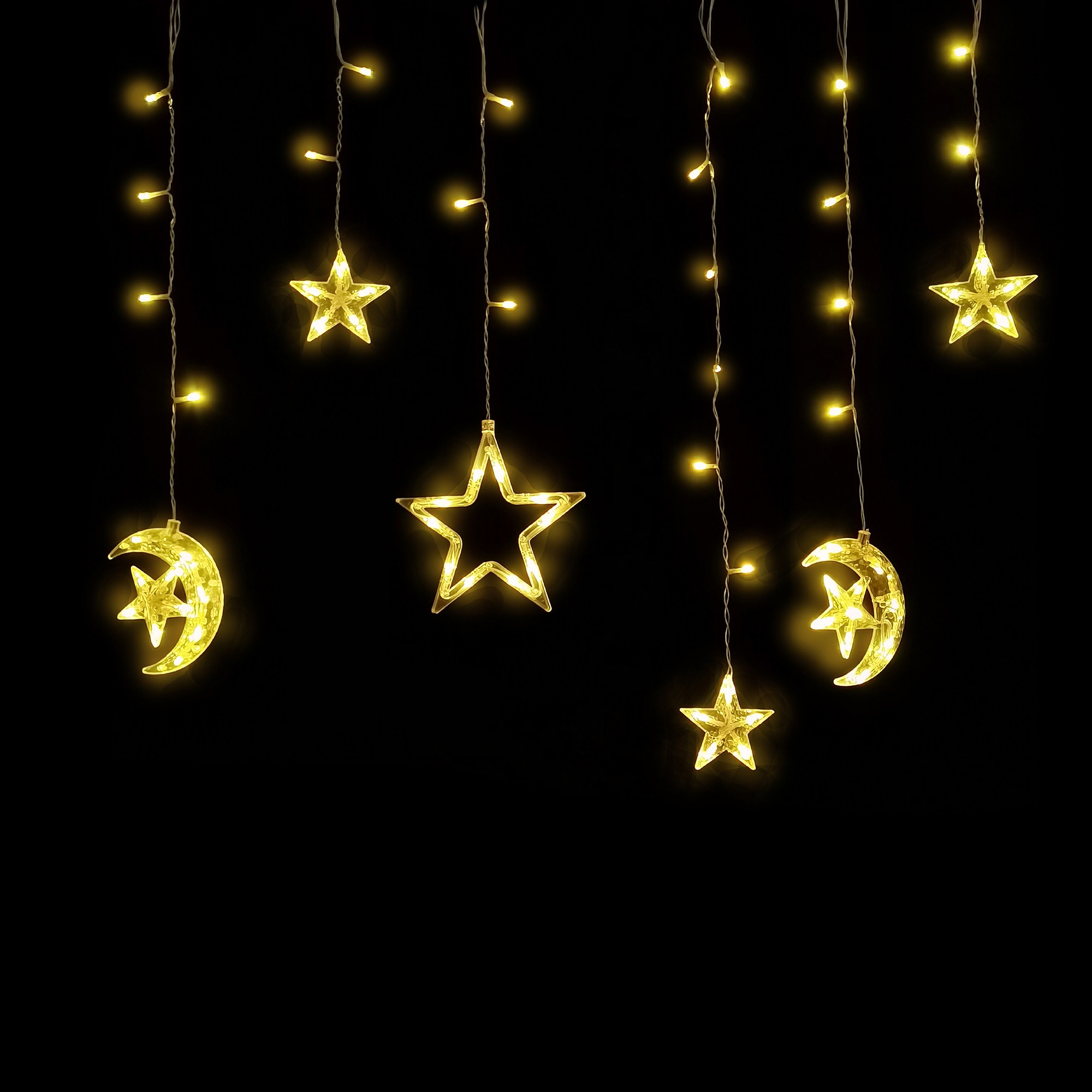 Entac Christmas Curtain Light IP44 WW 135 LED 12 Strings of Stars and Moons + 8F Timer 3x0,7m with IR Remote