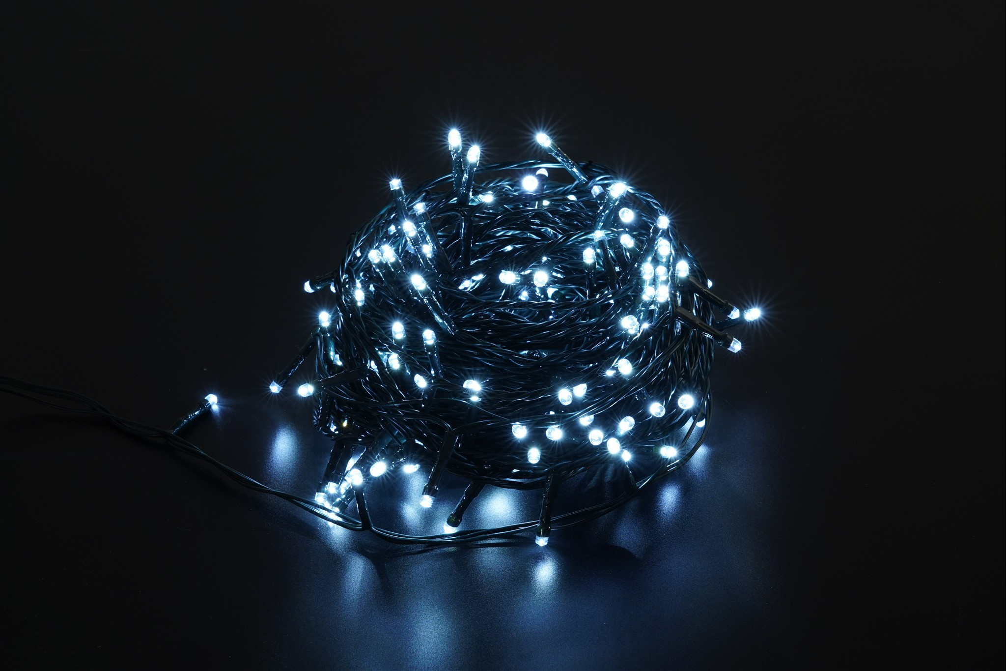 Entac Christmas IP44 100 LED String CW 10m with Solar Spike