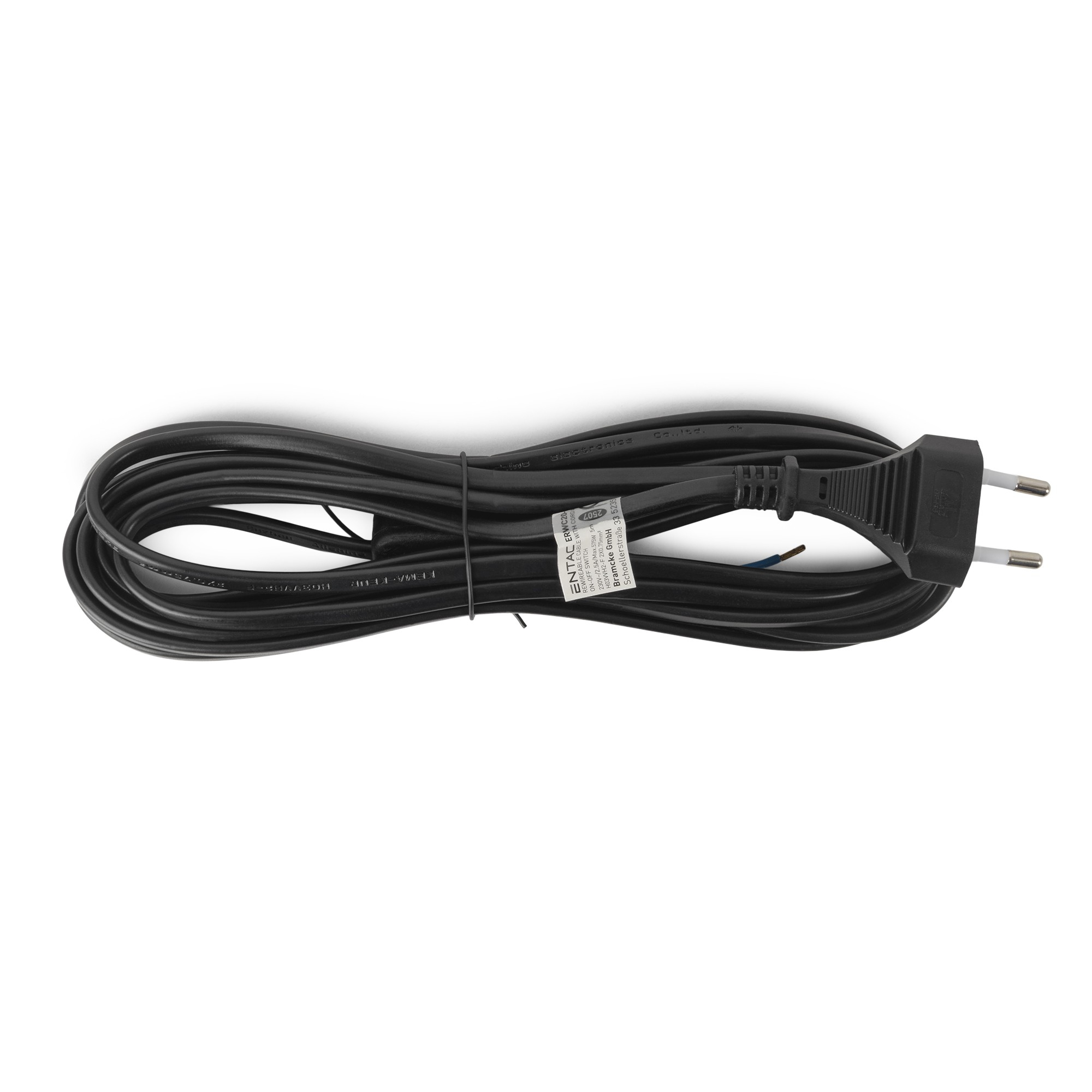 Entac Rewireable Cable 2G0.75 5m with on/off switch, Black